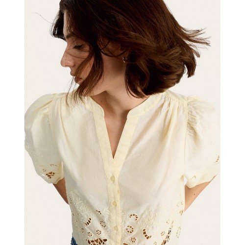 Pure Cotton Broderie Cut Out Co-ord Blouse in Yellow