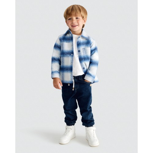 Pure Cotton Brushed Check Print Pyjama Bottoms in Navy