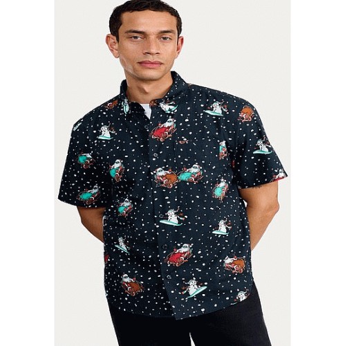 Pure Cotton Snowman and Sleigh Print Shirt in Navy