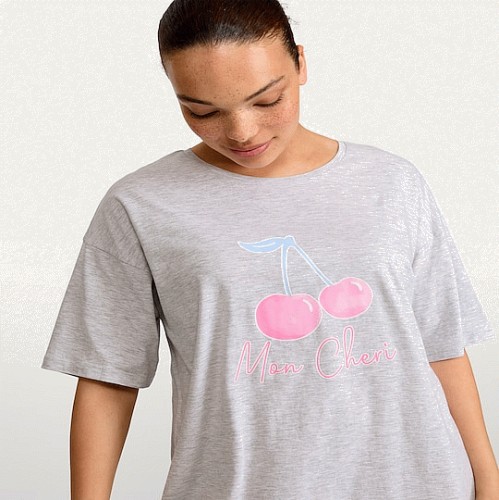 Cotton Rich Mon Cheri Slogan Cherry Print Nightdress in Grey