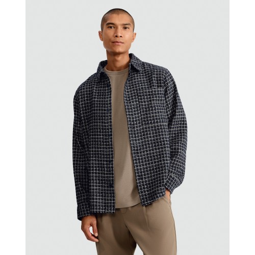 Boucle Check Print Button Up Shirt in Blue