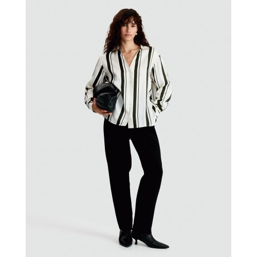 Satin Stripe Print Button Up Shirt in Khaki