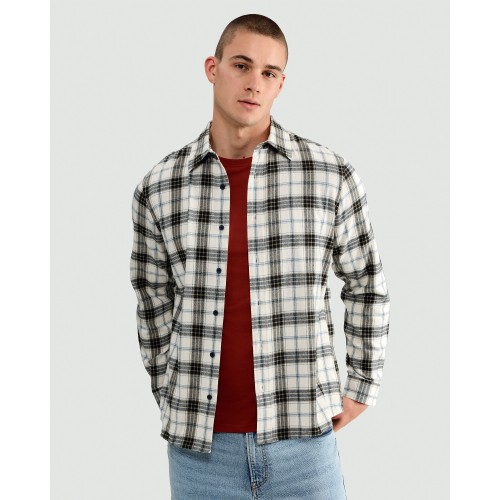 Pure Cotton Check Print Long Sleeved Shirt in Cream