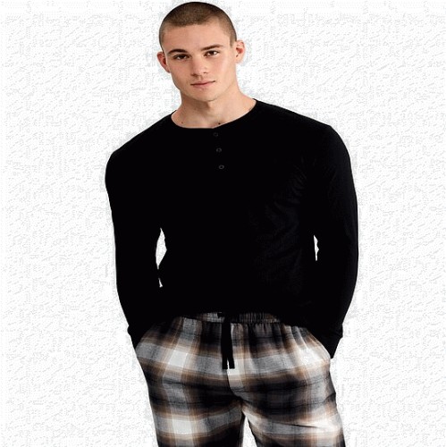 Pure Cotton Henley Top and Check Print Bottoms Pyjama Set in Multi