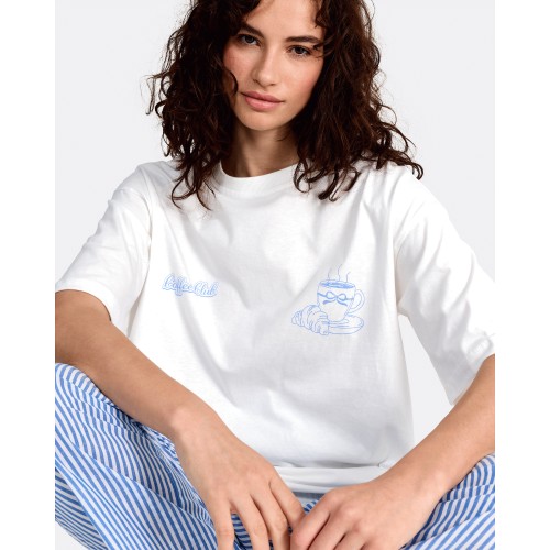 Pure Cotton Coffee Lovers Club Print T-Shirt in Cream