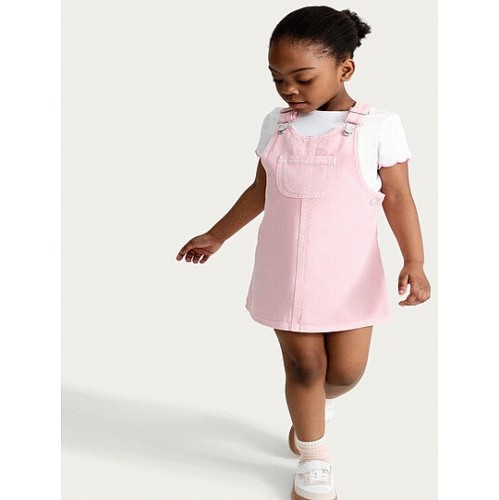 F&F Girls 2-Piece Pure Cotton Denim Pinafore Dress and T-Shirt Set in Pink