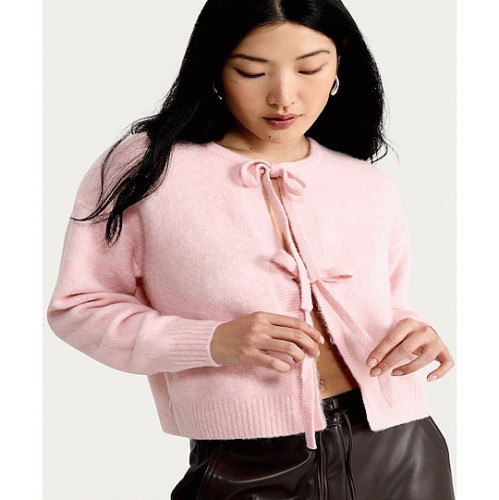Pure Cotton Crochet Tie Front Cardigan in Cream