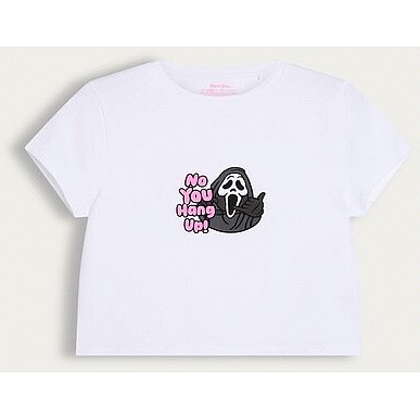Ghost Face Cotton Rich No You Hang Up Cropped T-Shirt in White