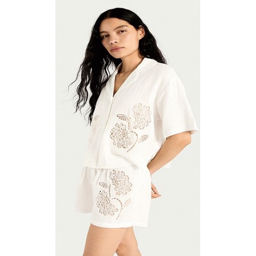 The F&F Edit Pure Cotton Embroidered Pyjama Shorts in White