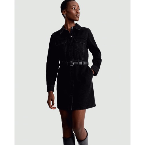 Pure Cotton Denim Shirt Mini Dress in Navy
