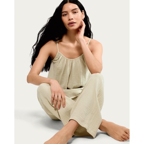 Pure Cotton Double Cloth Tie Front Pyjama Set in Yellow