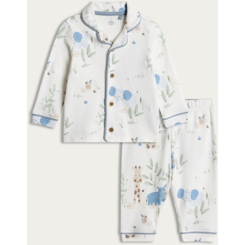 Pure Cotton Blueberry Print Pyjama Set in Multi White