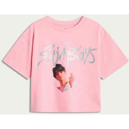 K-Pop Demon Hunters Pure Cotton Saja Boys Print Cropped T-Shirt in Pink
