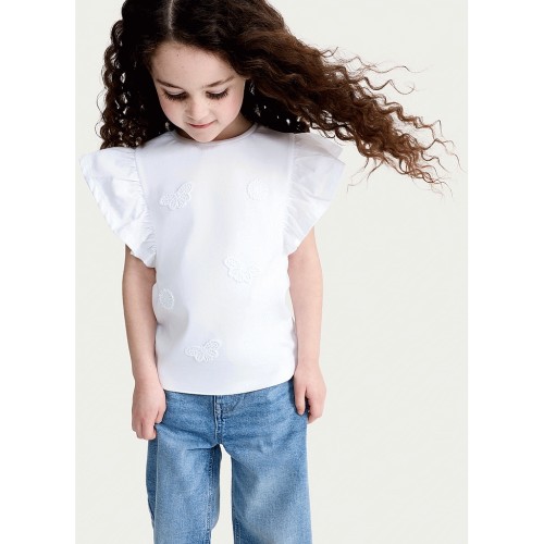 F&F Girls Pure Cotton Butterfly Embroidered T-Shirt in White