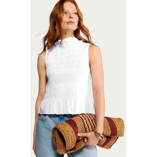 Pure Cotton Shirred Sleeveless Top in White