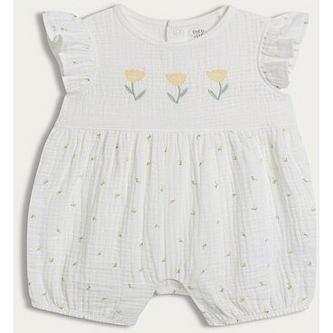 Pure Cotton Embroidered Short Sleeved All-in-one in White