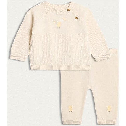 2-Piece Pure Cotton Embroidered Jumper and Trousers Set in White