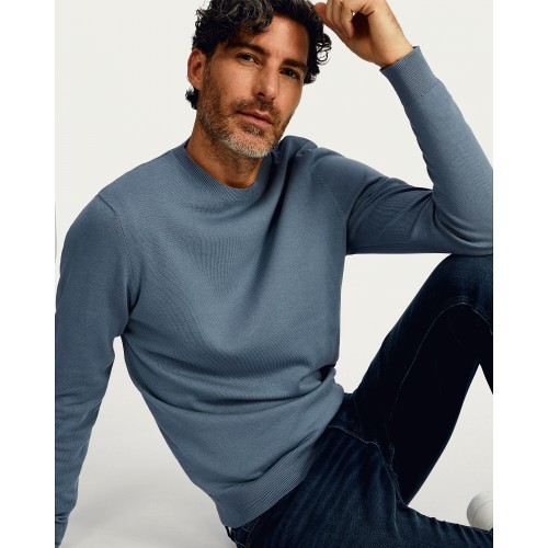 Pure Cotton Fine Knit Jumper in Blue