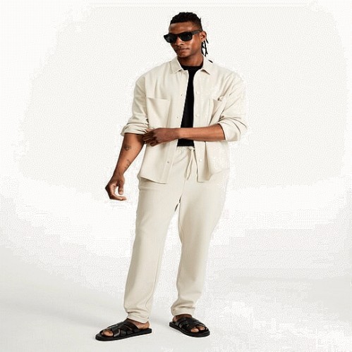 Textured Drawstring Straight Leg Co-ord Joggers in Stone