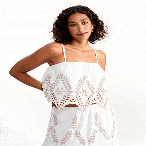 The F&F Edit Pure Cotton Embroidered Scallop Hem Cropped Co-ord Cami Top in Multi White