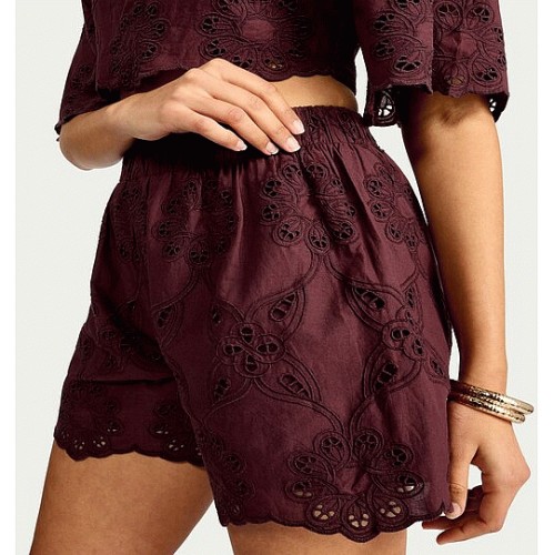 Pure Cotton Embroidered Co-ord Shorts in Multi Red