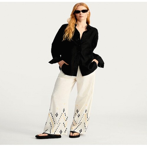 Pure Cotton Embroidered Wide Leg Co-ord Trousers in Cream