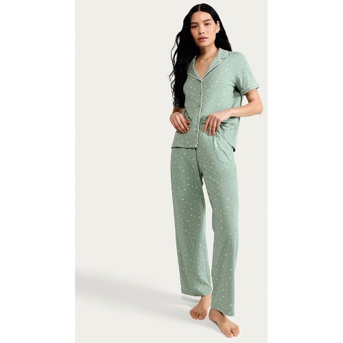 Pure Cotton Floral Print Pyjama Set in Multi Green