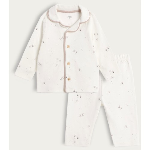 Pure Cotton Sheep Print Pyjama Set in White