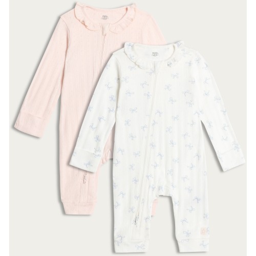 2-Pack Pure Cotton Frill Collar Sleepsuits in White