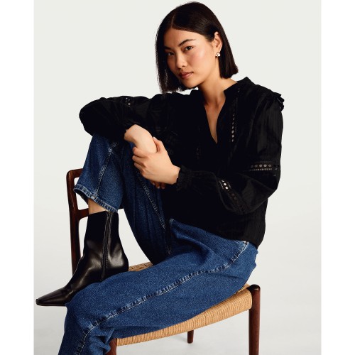Pure Cotton Frill Sleeve Button Up Blouse in Black