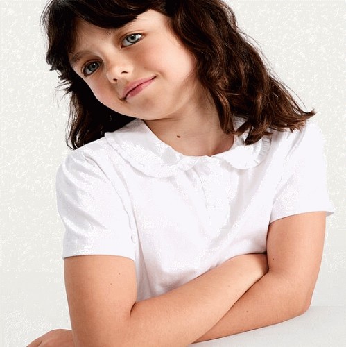 F&F School Girls Frill Trim Short Sleeved Polo Shirt in White