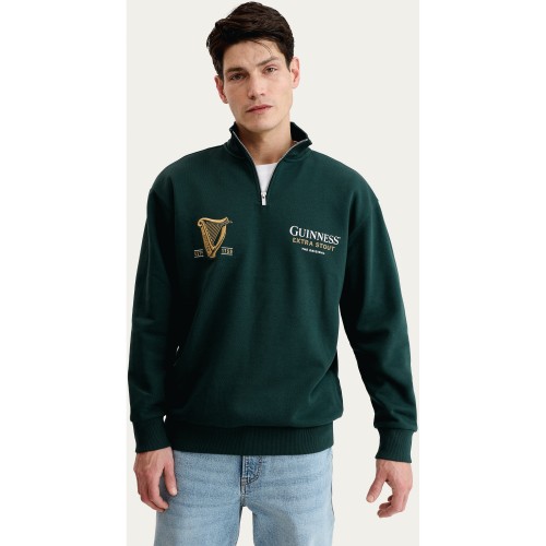 Guinness Extra Stout Cotton Rich Embroidered Half Zip Sweatshirt in Green