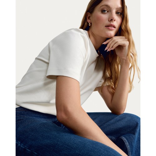 Pure Cotton Heavyweight Crew Neck T-Shirt in Cream