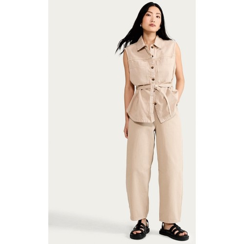 High Rise Barrel Leg Jeans in Med Nude