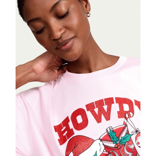 Pure Cotton Howdy Christmas T-Shirt in Pink