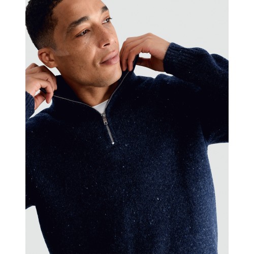 Pure Cotton Knitted Half Zip Jumper in Navy