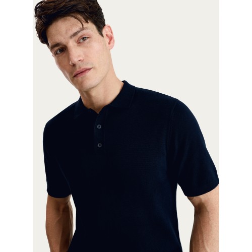 Pure Cotton Knitted Short Sleeved Polo Shirt in Navy