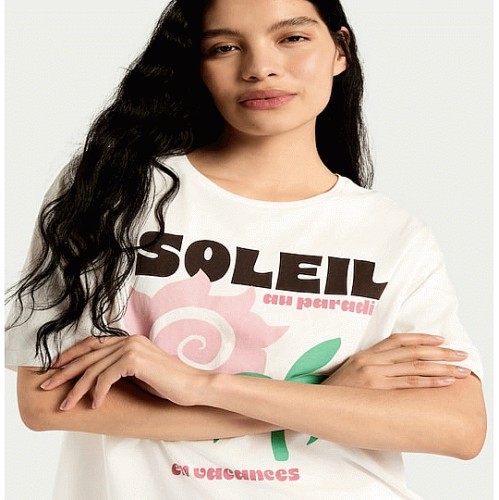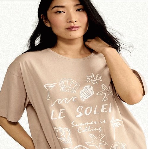 Pure Cotton Le Soleil Print Pyjama T-Shirt in Stone