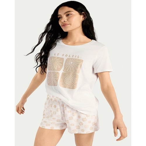 Pure Cotton Soleil Print Pyjama T-Shirt in Multi White