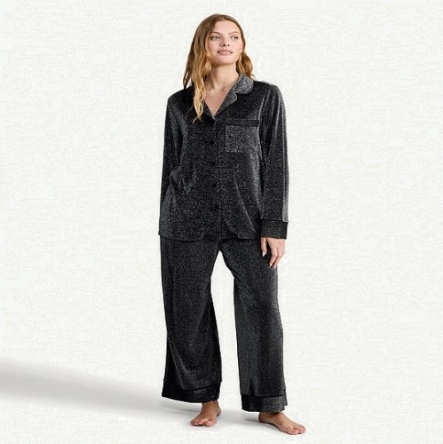 Textured Shimmer Shirt and Bottoms Pyjama Set in Grey
