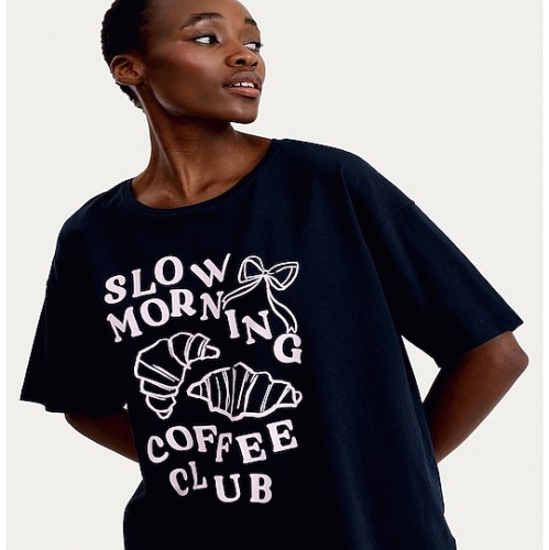 Pure Cotton Coffee Club Pyjama T-Shirt in Navy