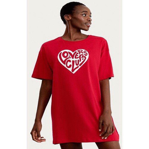 Pure Cotton Lovers Club Heart Print Nightdress in Multi Red