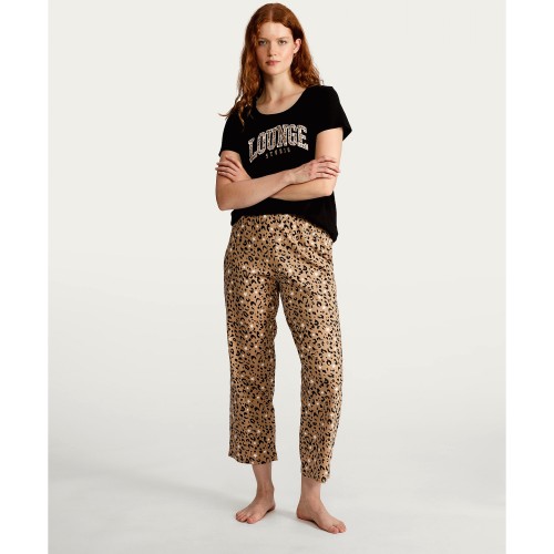 Pure Cotton Leopard Print Lounge Studio Pyjama Set in Multi Black