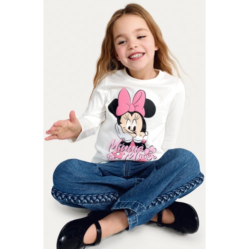 Disney Minnie Mouse Print Pure Cotton Long Sleeved Top in White