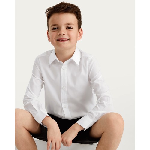 F&F School Boys 3-Pack Cotton Blend Slim Fit Long Sleeved Shirts in White
