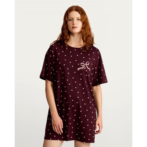 Pure Cotton Polka Dot Nightdress in Burgundy