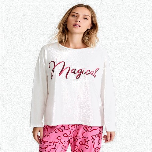 Pure Cotton Magical Slogan Pyjama Top in White