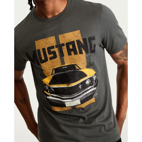 Ford Mustang Pure Cotton Graphic T-Shirt in Grey