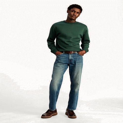 Relaxed Fit Vintage Washed Denim Jeans in Blue