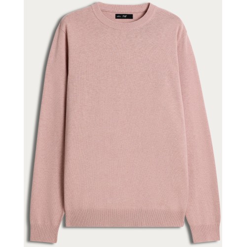 Pure Cotton Ribbed Crew Neck Jumper in Pink